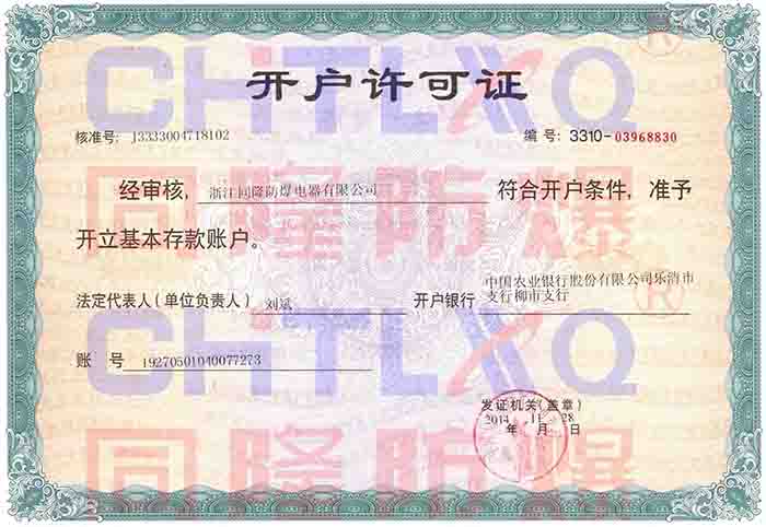 • 開戶許可證 開戶許可證